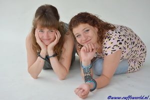 On june 16 th we have the yearly event cuffsday, a meeting for collectors of handcuffs. We also invited some models to show our collectors items. and they love to do it for us. This year we invited our lovely models Helena and Sigrun for our event. The first set we do with them are with some profesional plastic handcuffs, known as the TRI-LOCK, from the collection of one of my best friends Cuffman. Nice handcuffs and the girls like them also.