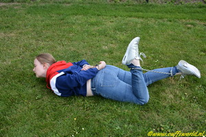 Keywords: handcuffs;hoodie;jeans;bellly